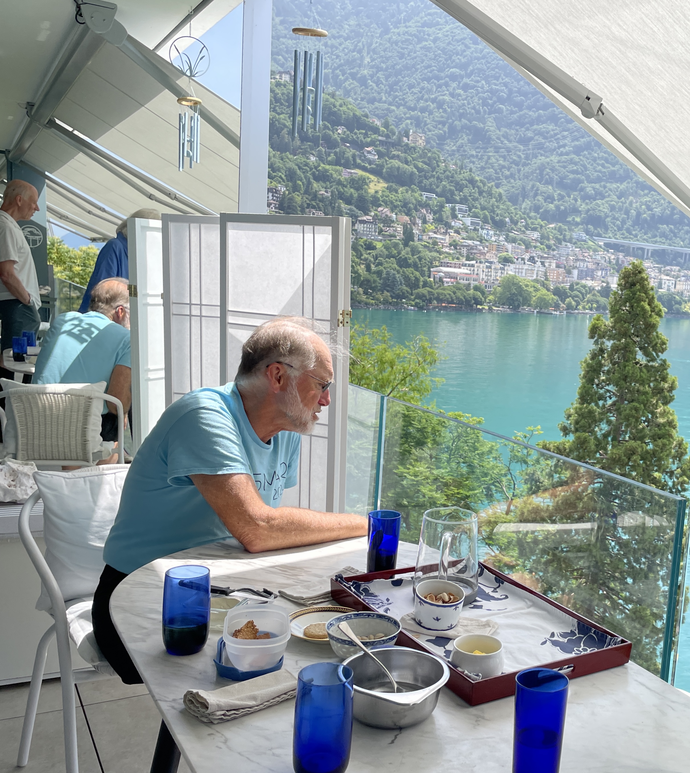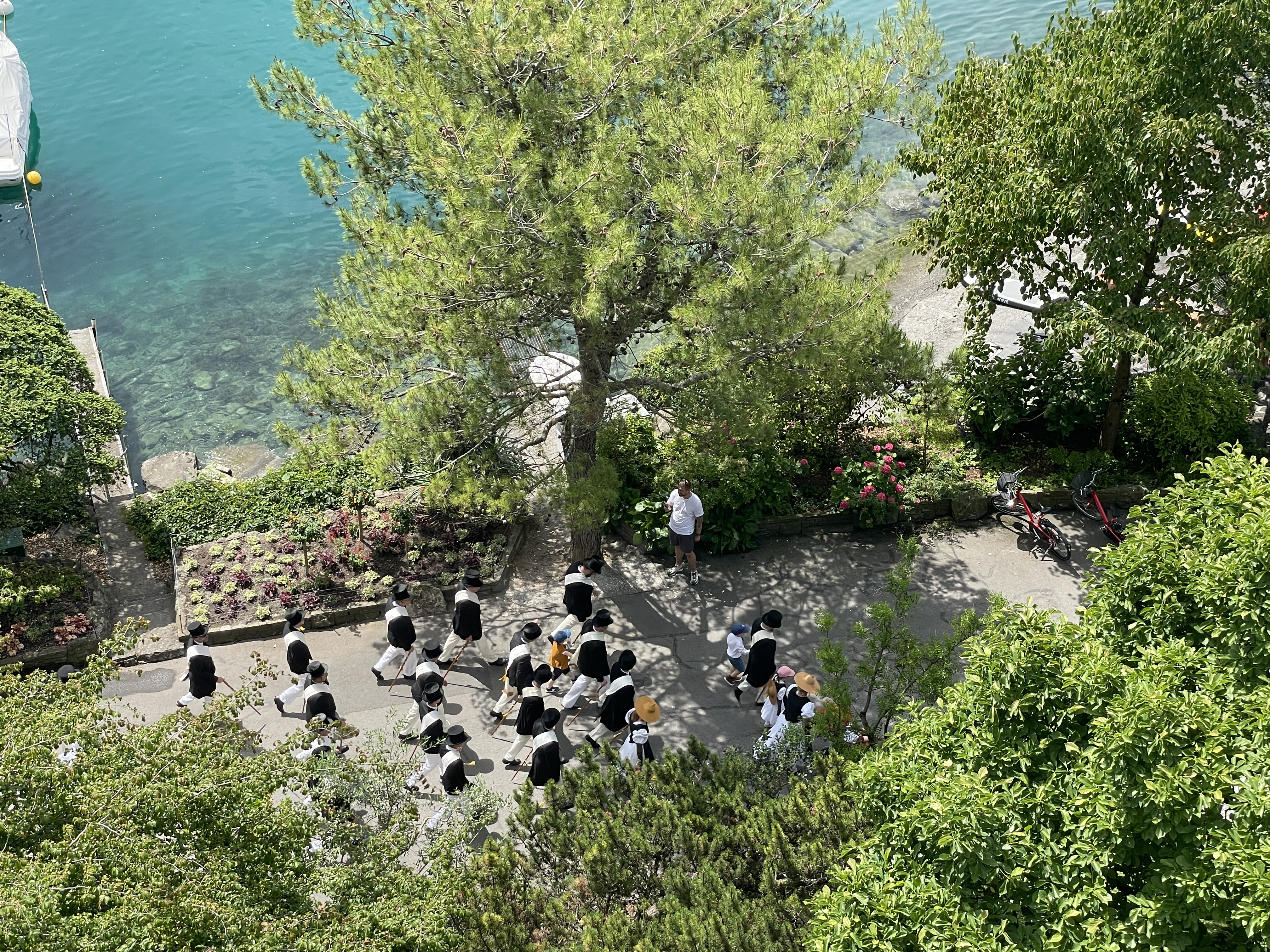Above Glion. The skies are still hazy Tea at Robin's There's a parade of confrerie de l'echarpe blanche Formal attire Costumes Robin Le Vevey (CGN) 10 June Alamont with Valerie and Michael15-23 June Southern France <-- daily subalbums