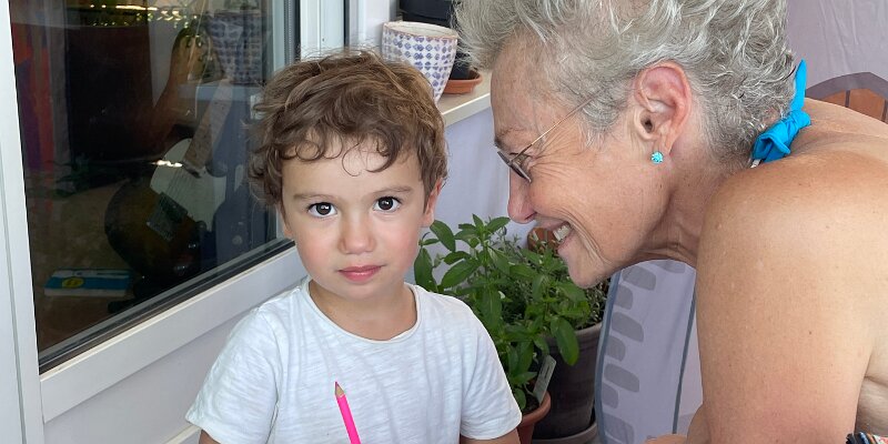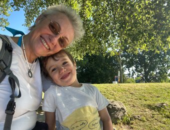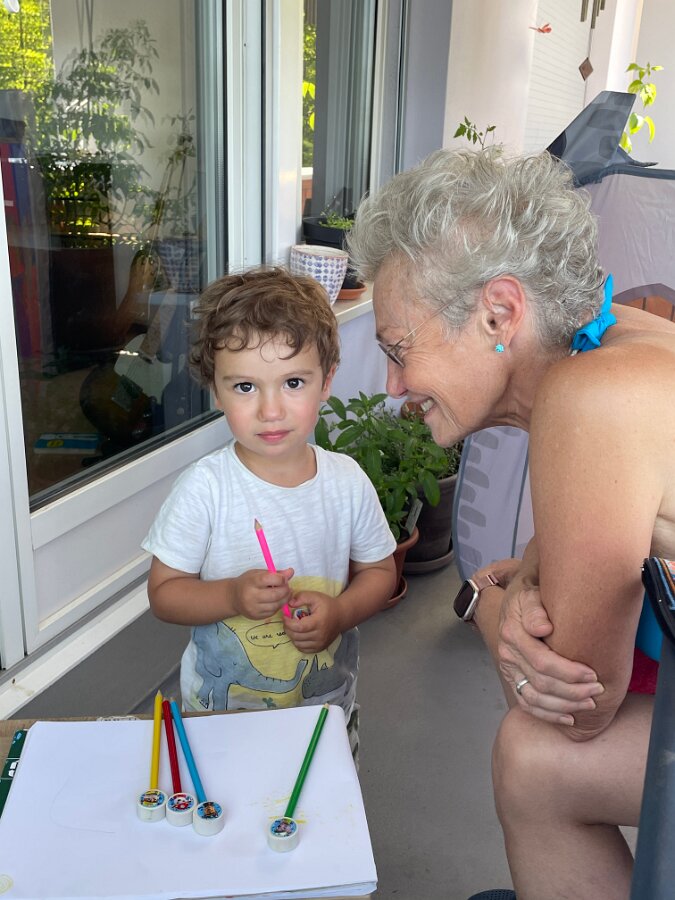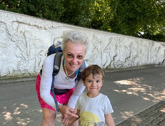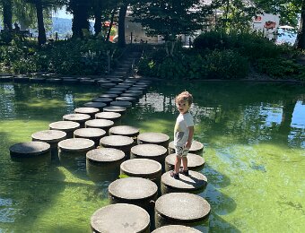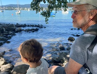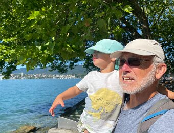 Wiht his Titine at the edge of the lake