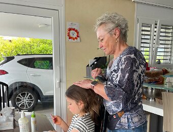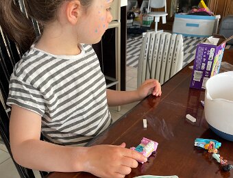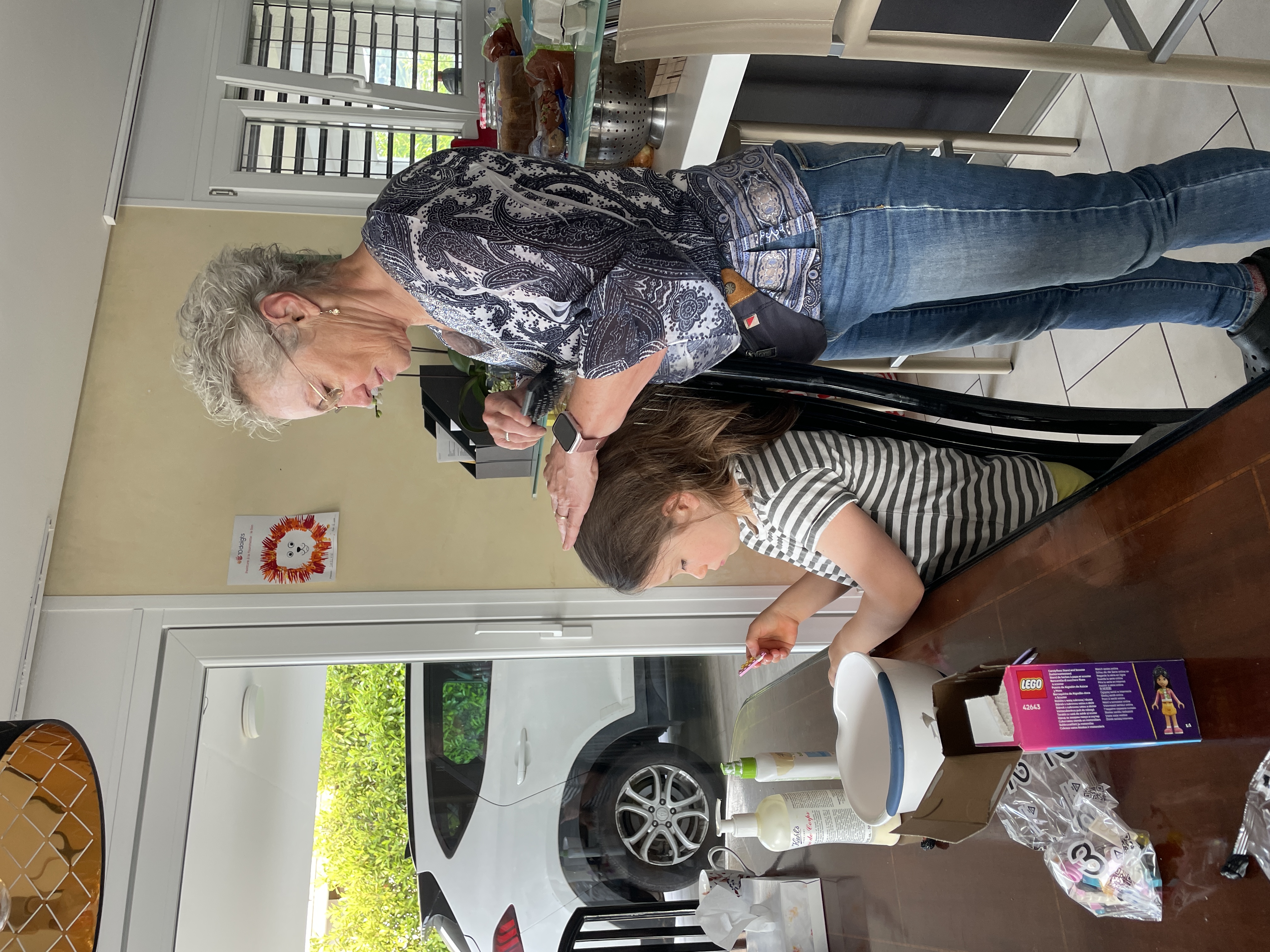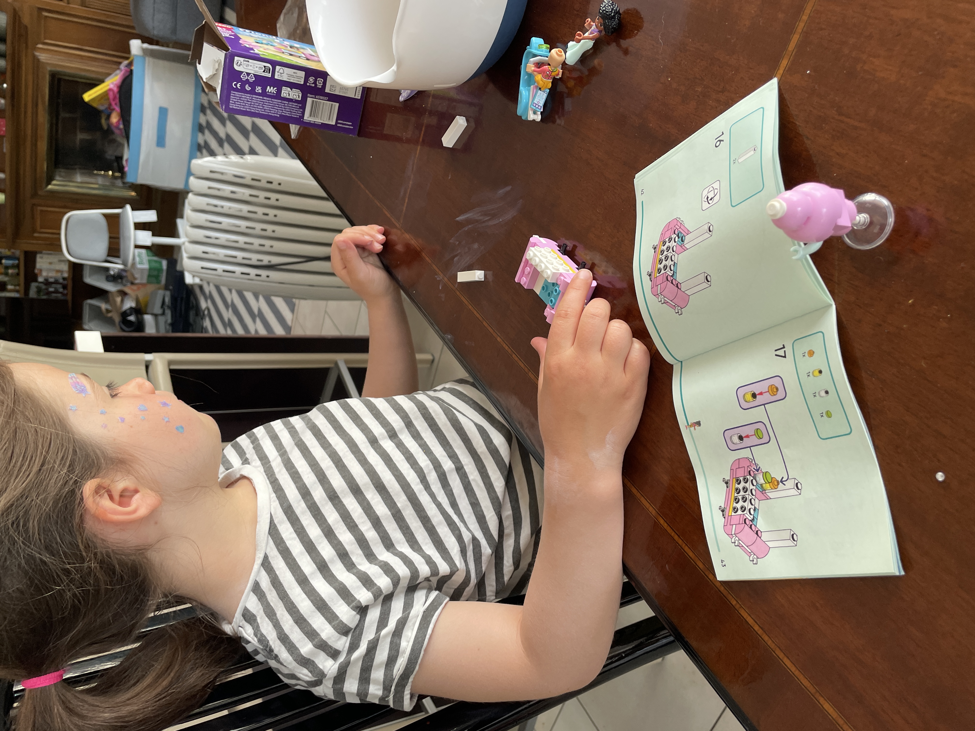 She's also assembling a Lego kit that the "tooth fairy" brought