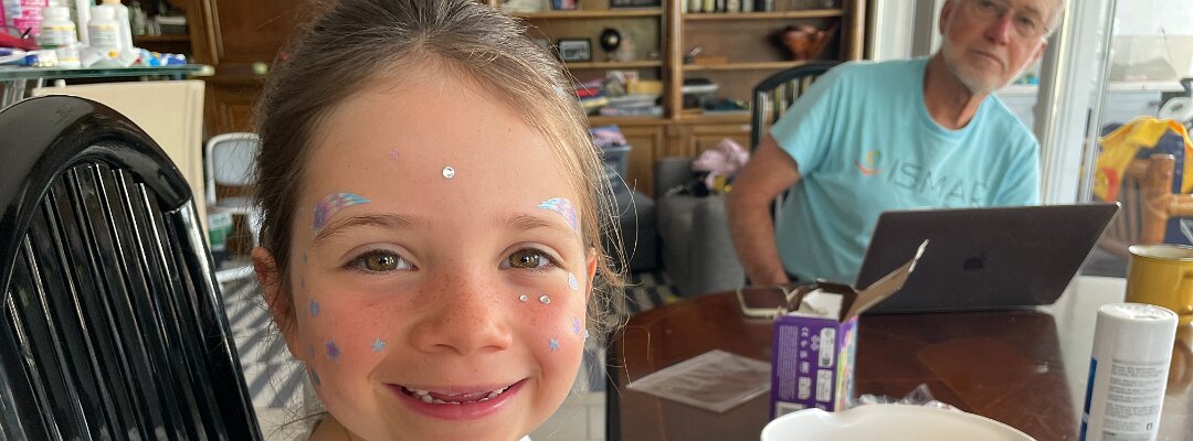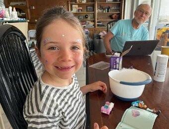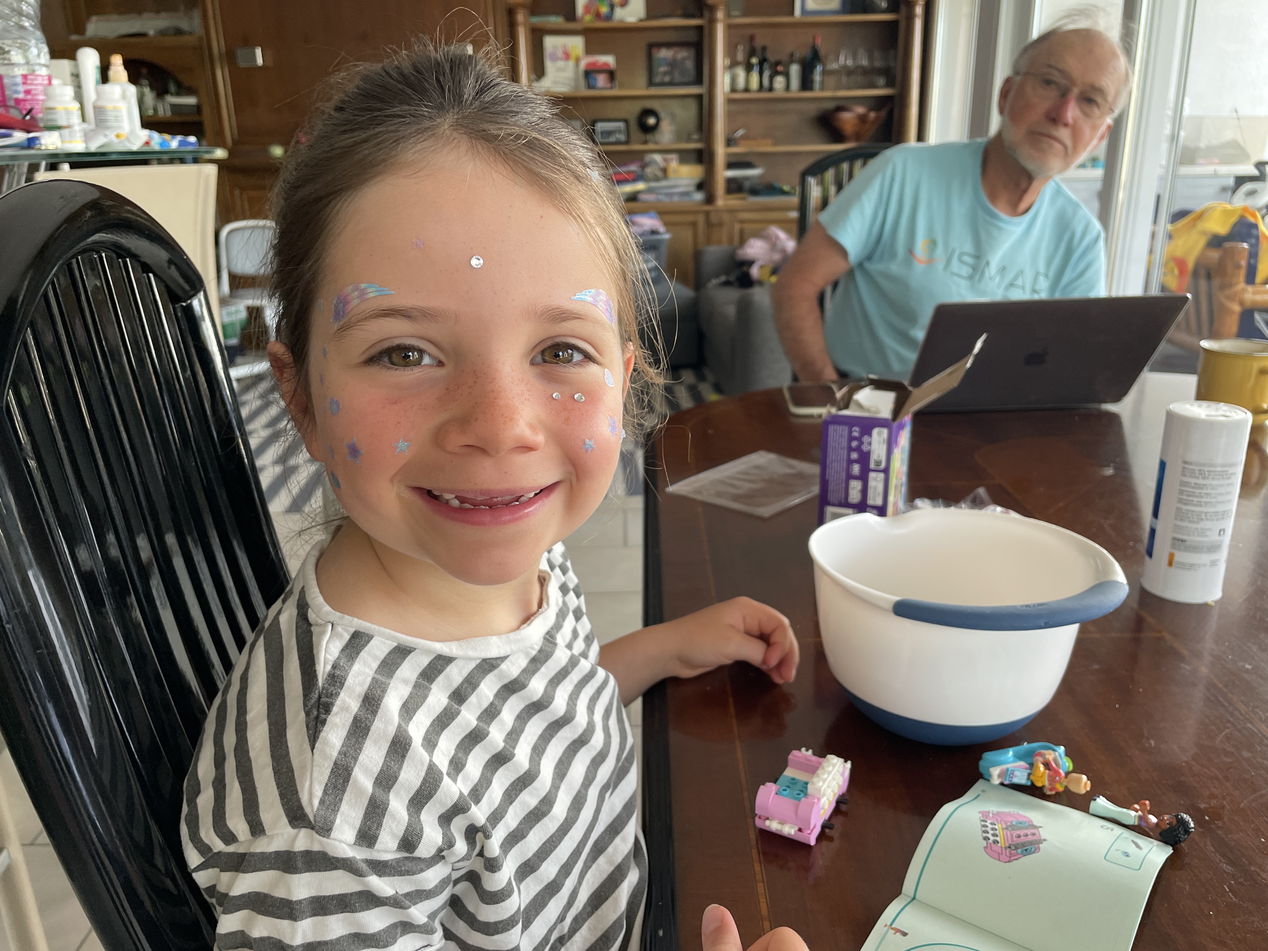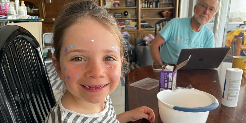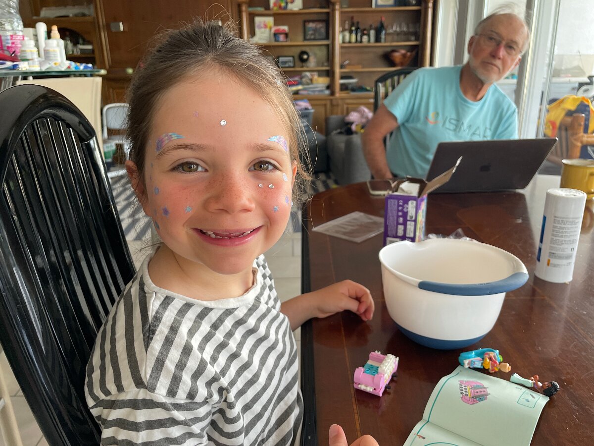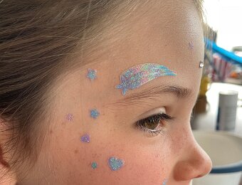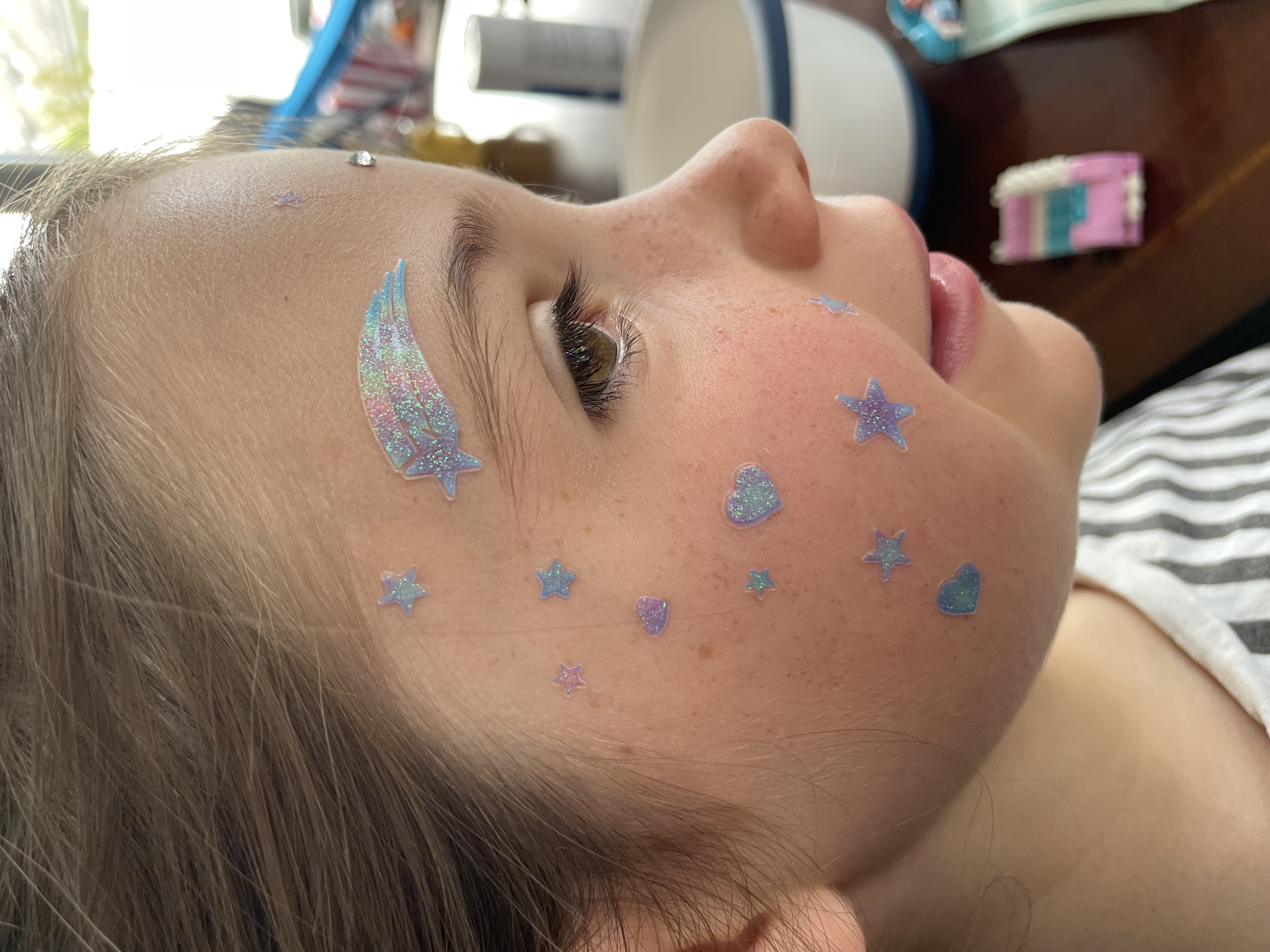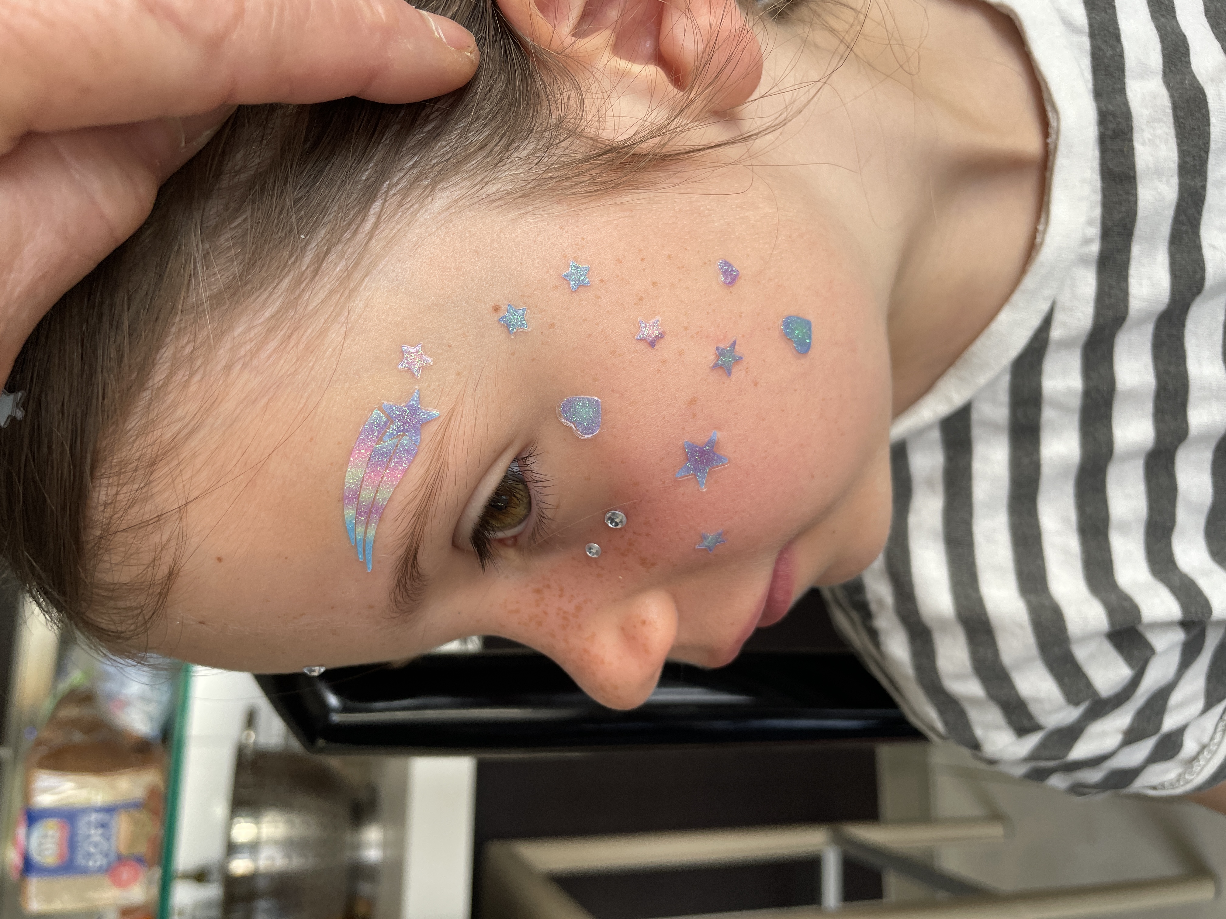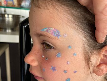 She's getting sequins on her face