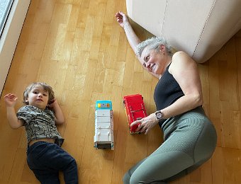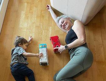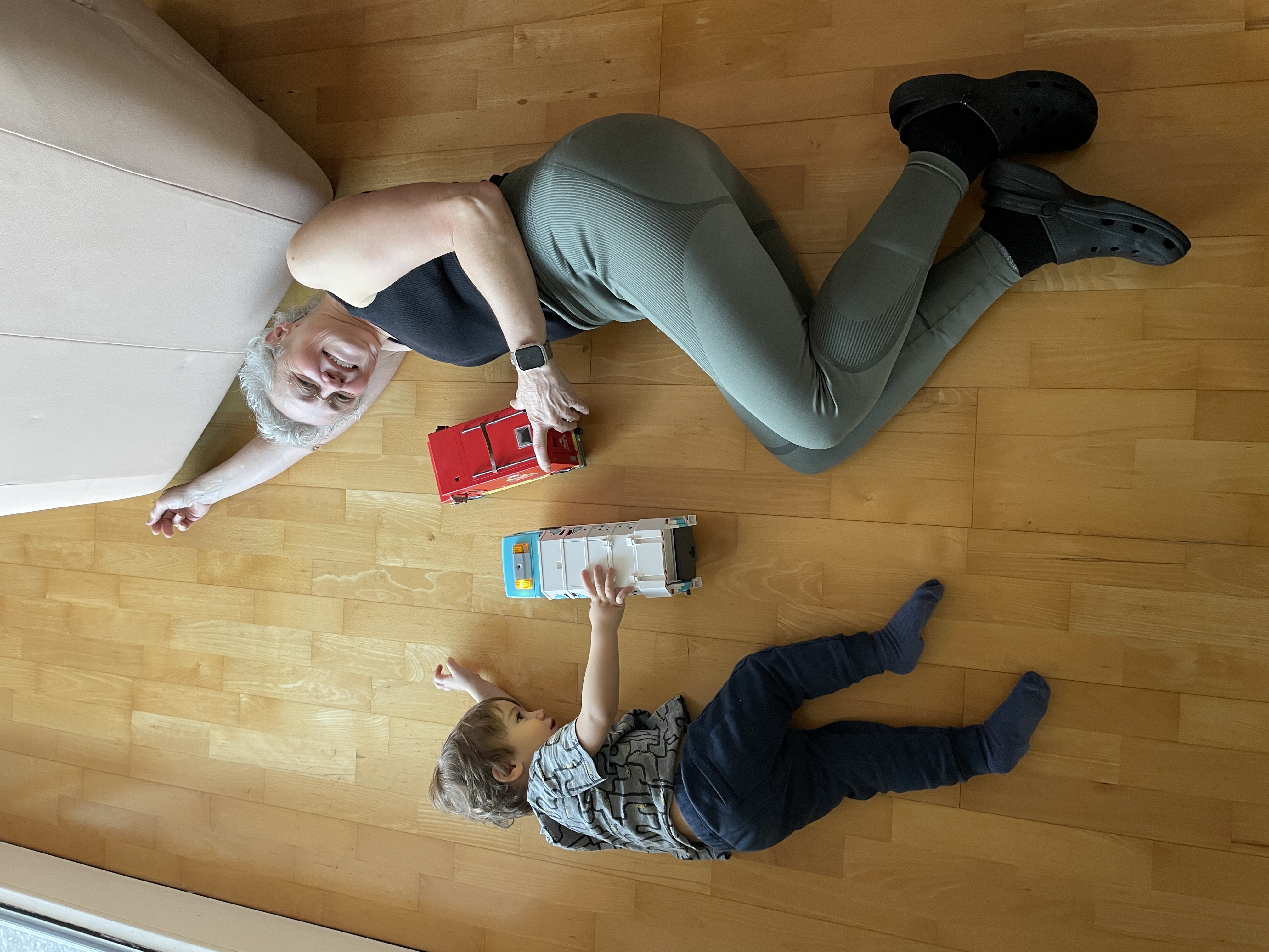 The correct posture for playing with trucks