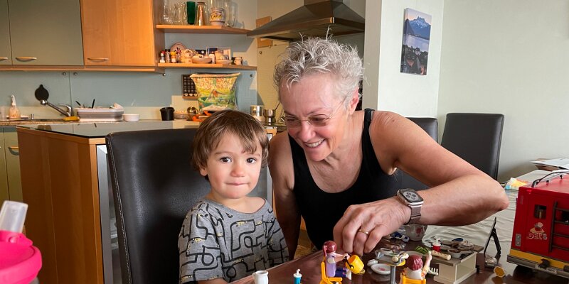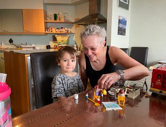 Maybe he's not sufficiently awake for looking at so many PlayMobil things!