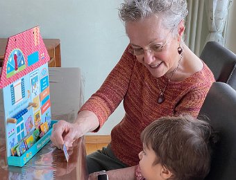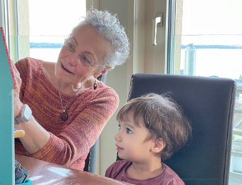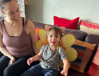 Brigitte brought Leo down for the weekend. New magnetic board from the ressourcerie might be better suited for 4-5 months from now