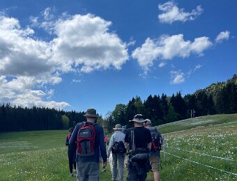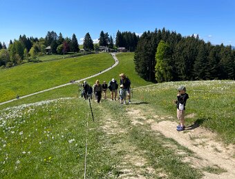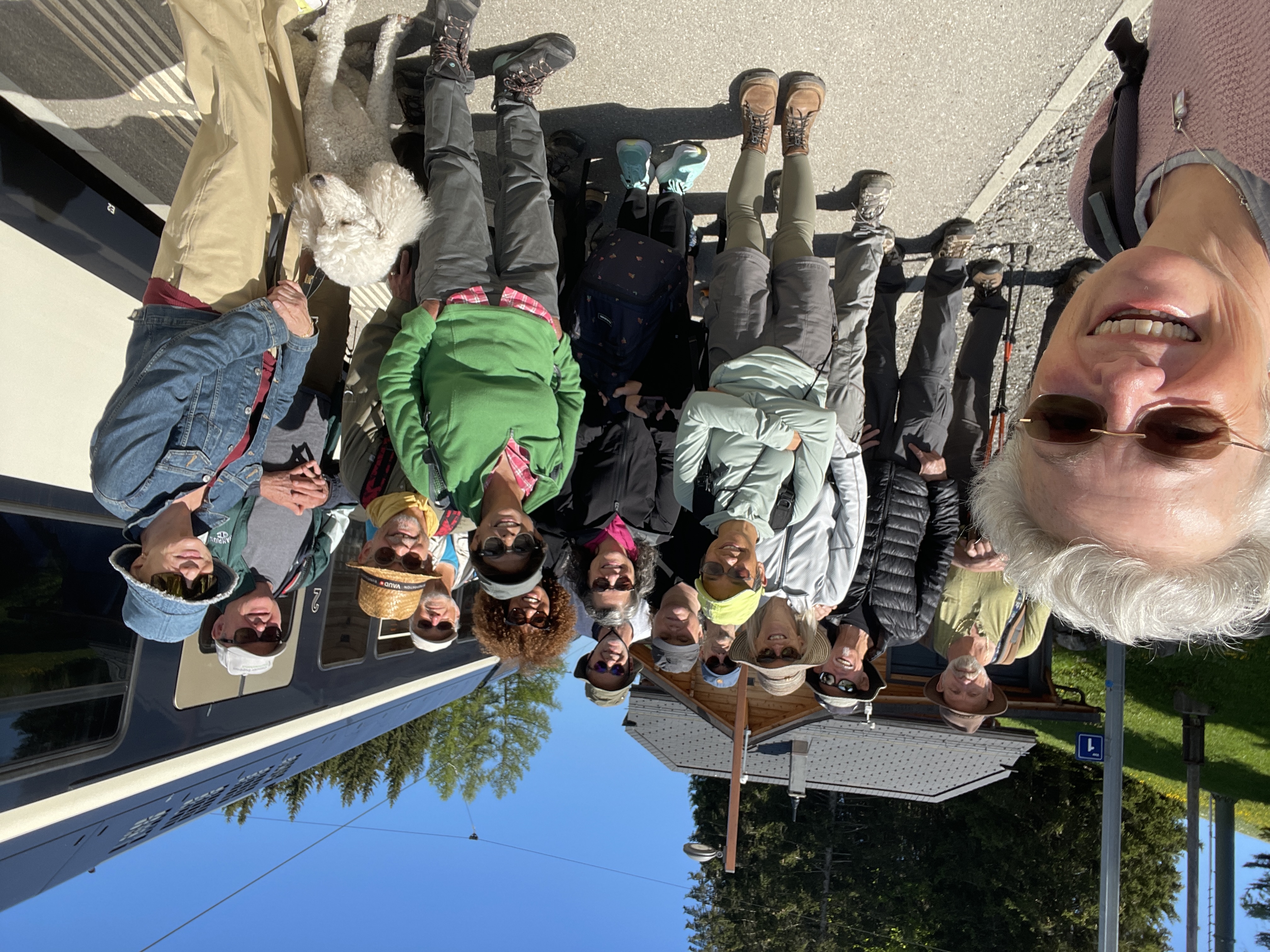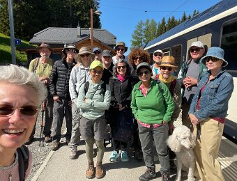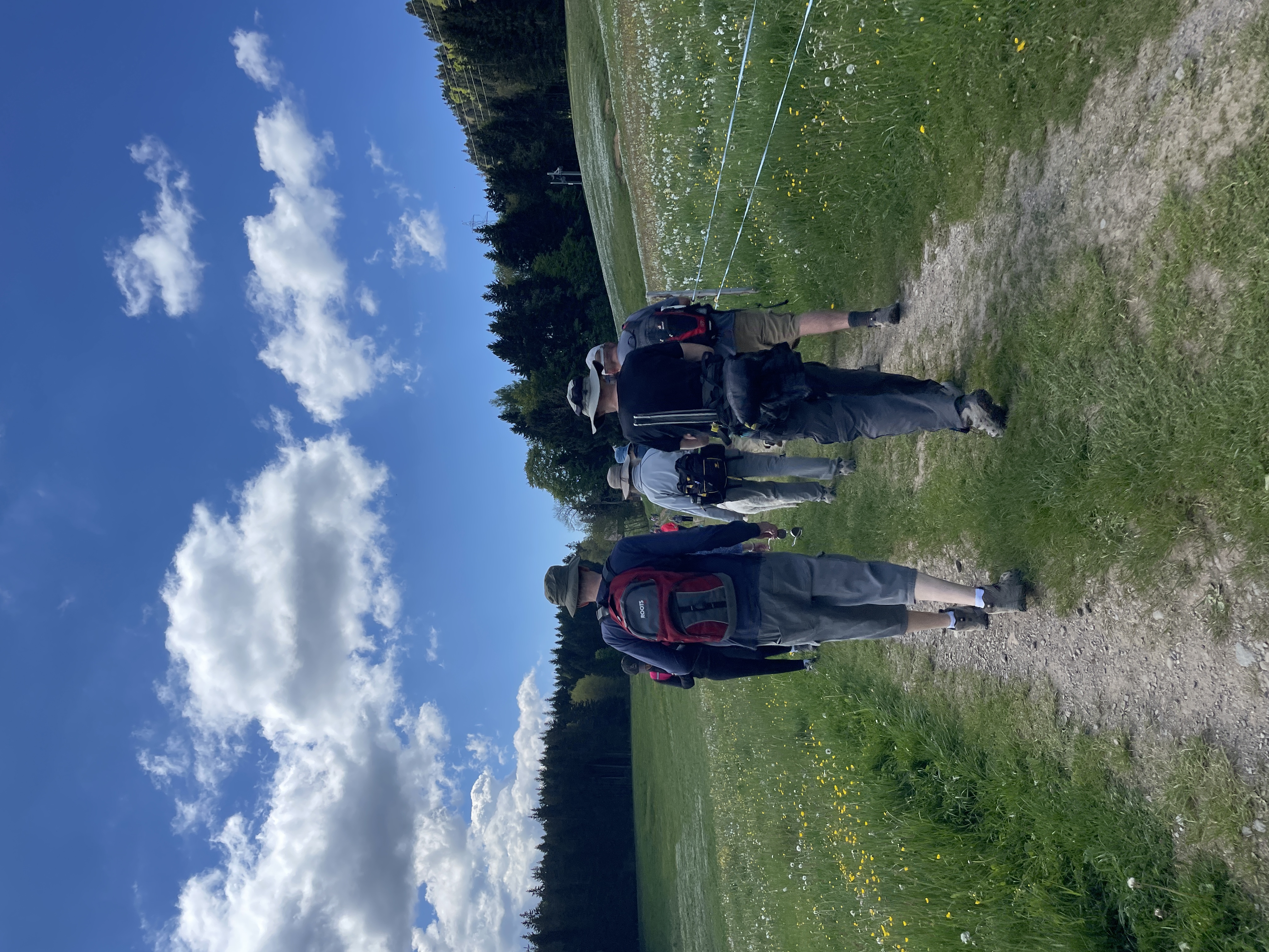 Saturday morning DemsAbroad hike - big group starting out from top of Les Pleiades at 10:48 AM