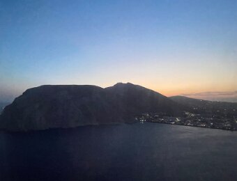 It's late afternoon when we leave Geneva Admiring the view of clouds It's past sunset when we approach the Santorini airport There's more to this island than just the Fira! The windows are blowing hard over the Cyclades 29 April - Firostefani to Oia (and back)