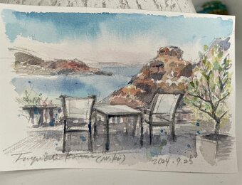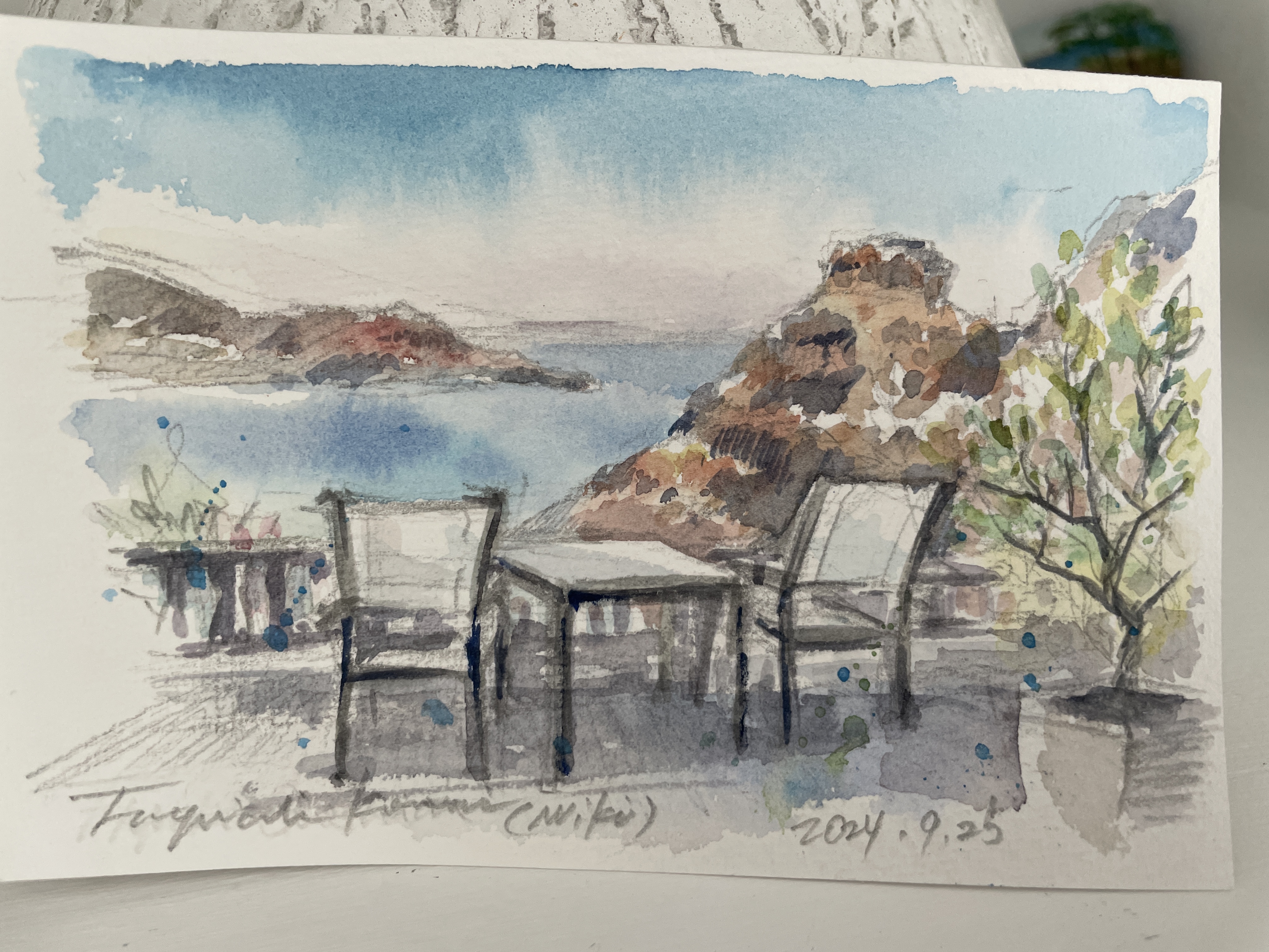 Santorini View Studio (painted by a guest who stayed last fall)
