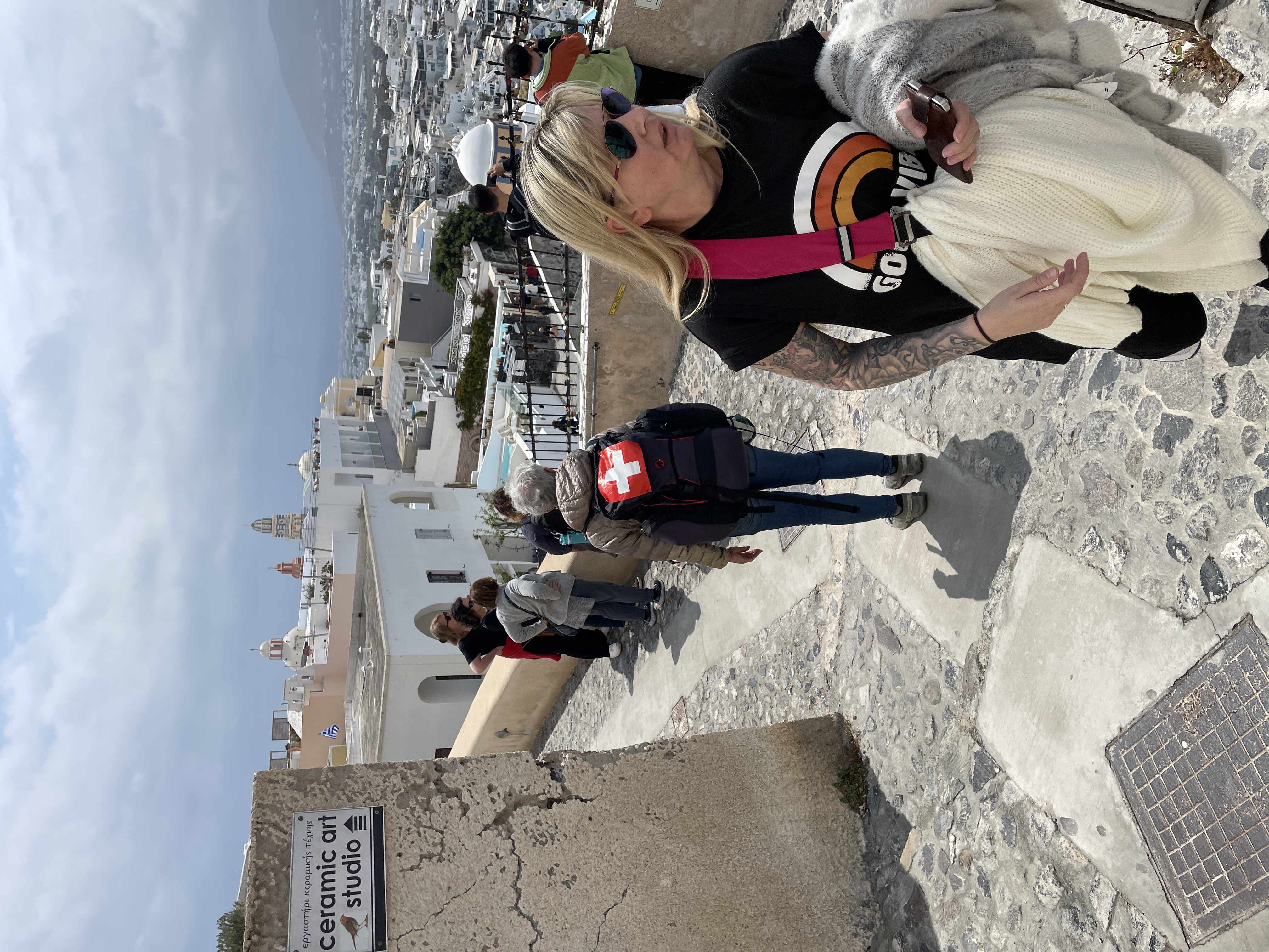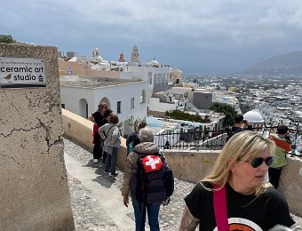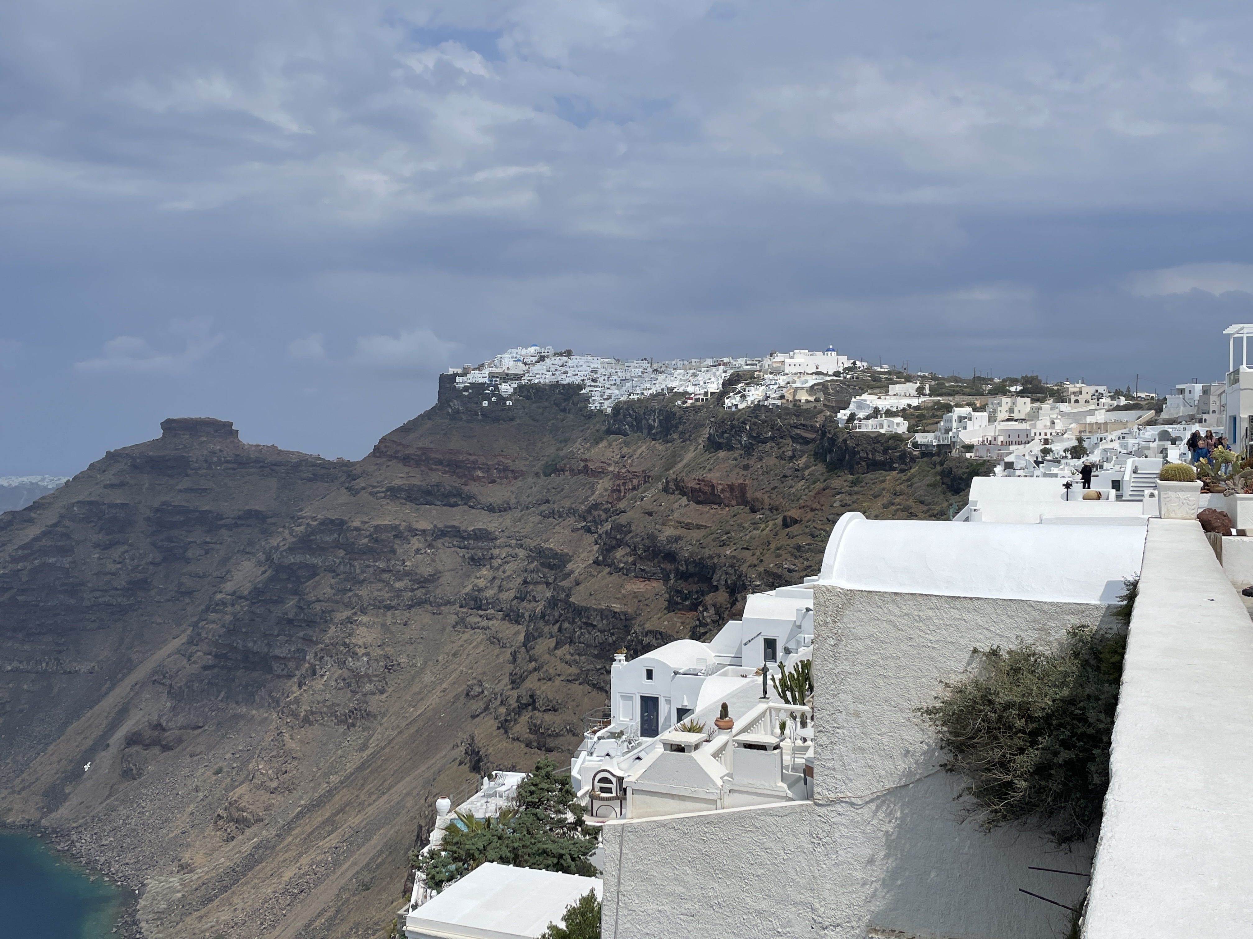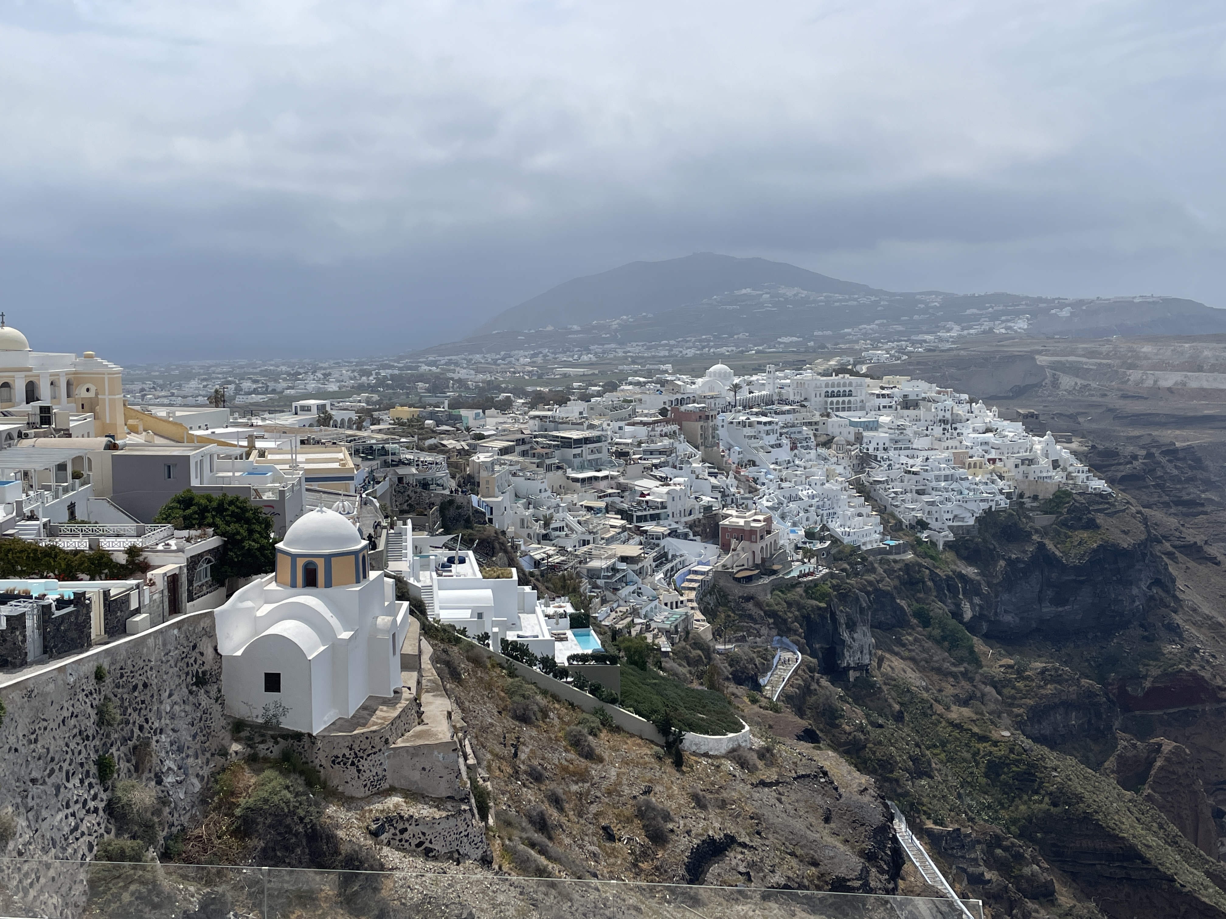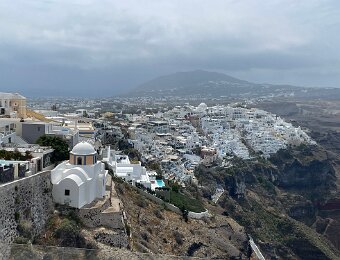 Firostefani under clouds