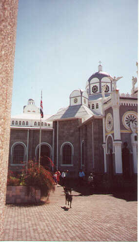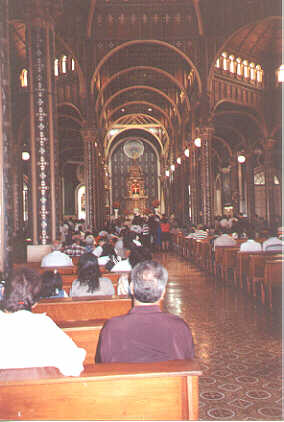 | On the way to Dominical we saw a beautiful church in the town of Cartago. | Inside there was a mass in progress, but we took pictures anyway. | We took a detour to San Gerardo de Dota where there was the possibility of seeing some Queztals. Unfortunately, we were not there at the right time of day but the road was sensational and the restaurant where we ate lunch (not pictured) was well worth the effort. |