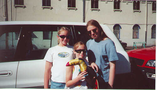 Three fair maidens sporting their sunglasses and displaying their new stuffed