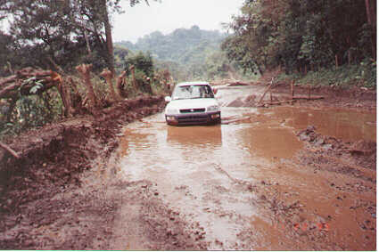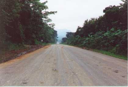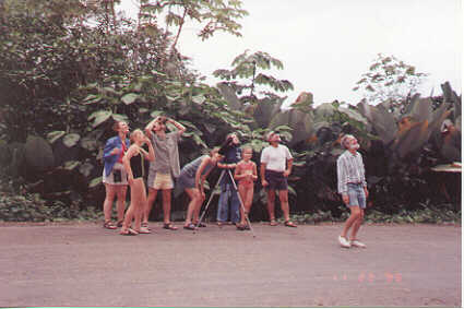 | The road north of Dominical was under water in places. | But south of town it was in beautiful condition, most of the way. | This was the first time we saw howler monkeys in the trees. We got Debra's spotting scope and took a closer look. |
