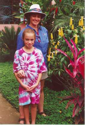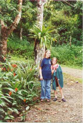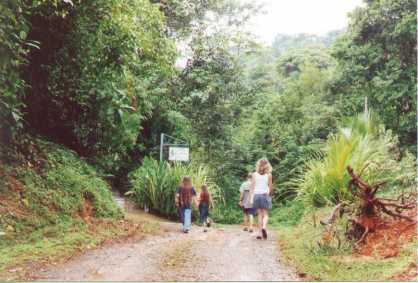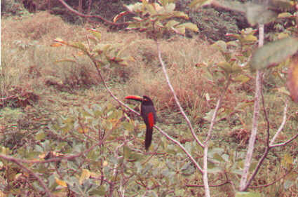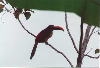 | The calls of these large birds notified us that they were in the vicinity. We found them on a branch of a tree below the neighboring house. | Here is a close up of the toucan. | Brigitte and Nikki | The road in front of Villas Escalaras taken as we returned from our first siting of Toucans. We saw several more during the stay. |