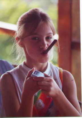 a card shark. The long chocolate cookie in her mouth looked like a